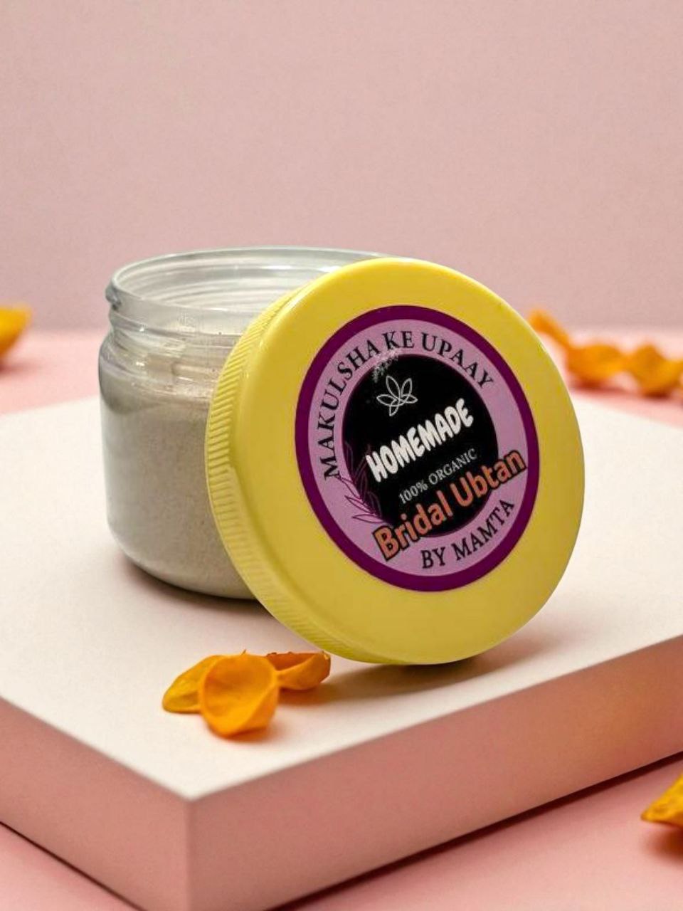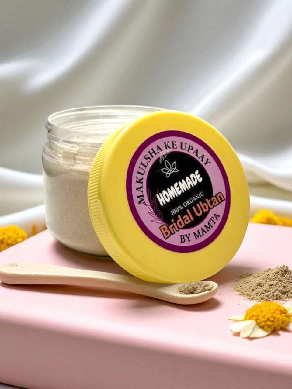 Bridal Ubtan is a traditional, handcrafted skincare blend made with pure herbs, pulses, and Ayurvedic powders known for their glow-boosting and skin-cleansing properties. Designed especially for brides-to-be, it helps in deep cleansing, tan removal, exfoliation, and giving a radiant, even-toned look — naturally.