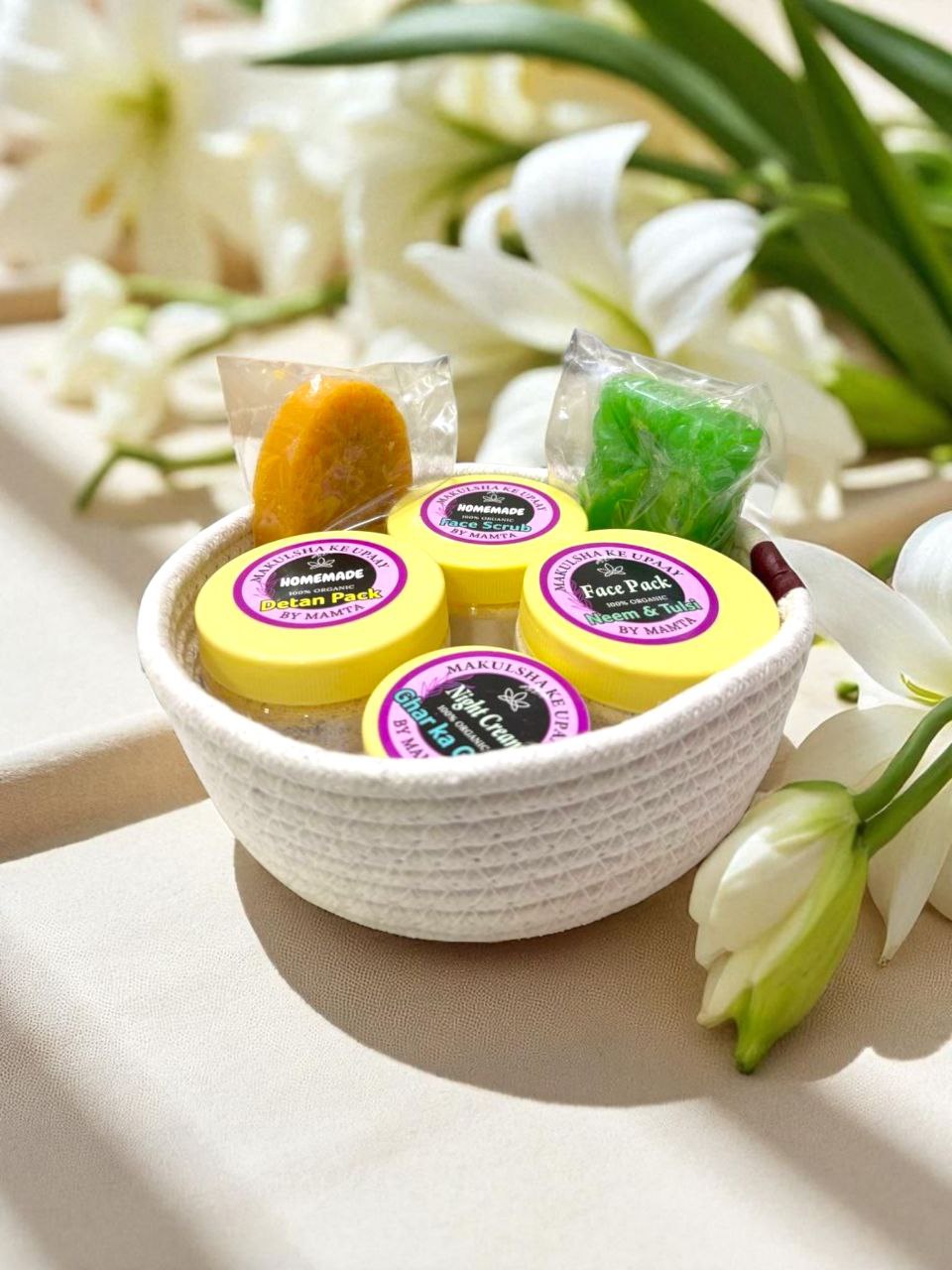 - Face Scrub – Exfoliates and removes dead skin buildup